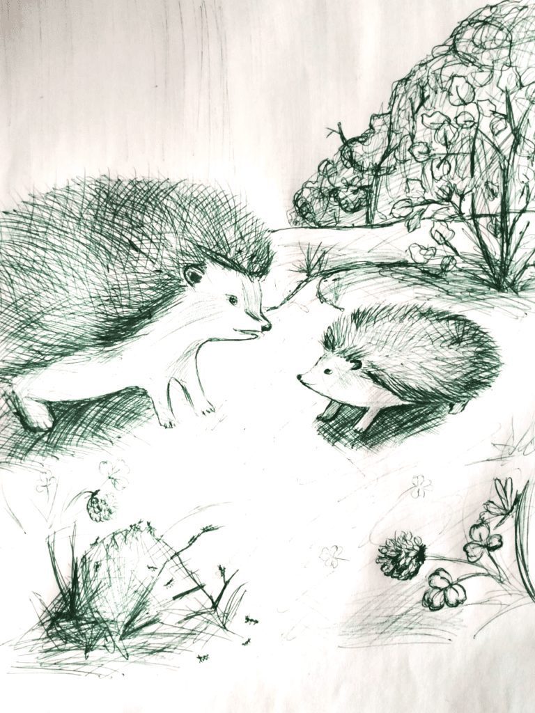 Но тай раз — дашто дуже великоє пудбігло ид Микулови. Величезна звірька, што подабала на лишку, лиш была многым май велика, сміло бігла руно на нашого безстрашного їжака. Микула онь заціпінїв! Дашто удну му пудказовало, ож ачий прийшов час ся зачати бояти та утїкати гет. Айбо як? Кидь тото біжит так скоро, выд сього ся мусай тоды прятати! Айбо як ся прятати? Изкрутити ся у клубок? Признати ся самому собі, ож страшно? Ож вȳн не смілый? Тото не!
