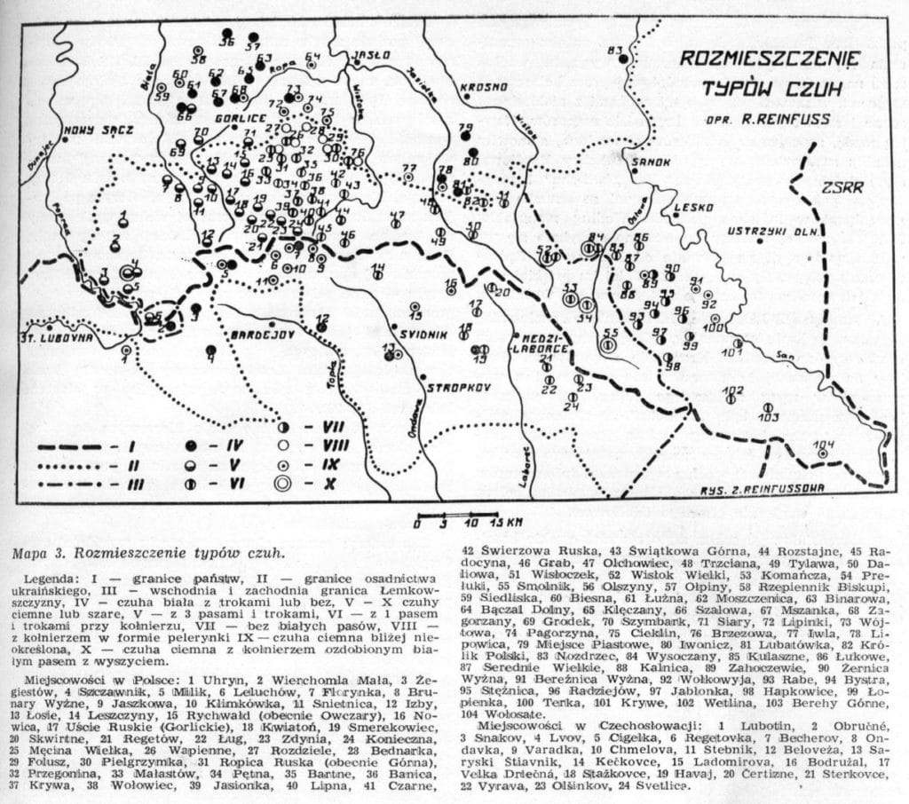 Кой гварити о чузї, то она (зрімнано) дос добрі збадана, лем… завсе сут своі «нюансы». Як уж знате, моє коріня з Кіньского. Кіньской, як такой решта сел коло Сянока, положене юж на лемківскій «граници», за то гев не є дакых властивых лемківскых рыс. Приміром, тутейшы руснакы не знают слова «гварити» – наміст «гварити» кажут «гадати». Подібнї, не знают гев тїж слова «лем» – наміст него кажут «тілько» альбо «іно» / «ено» (вспільнокореневы з «лем» формы). Певен, Вы ся ту кус застановили, гыбы што то сут за єдны такы «лемкы», котры навет не знают слова «лем»?! Той властивой лемківской «маркы»?! Колиси на тім застановил і я 🙂 Власнї, тото підштурхнуло ня глядати інны рысы, якы бы не одколювали, а, наопак, лучыли підсяніцкі села з рештом Лемковины, і… зо смутком дізнал ся, же пілнічно-всхідны границї Лемковины сут барз мало збаданы. Ба та што… но-ле товды до працї! Збадайме, ци носили люде коло Сянока чугы?