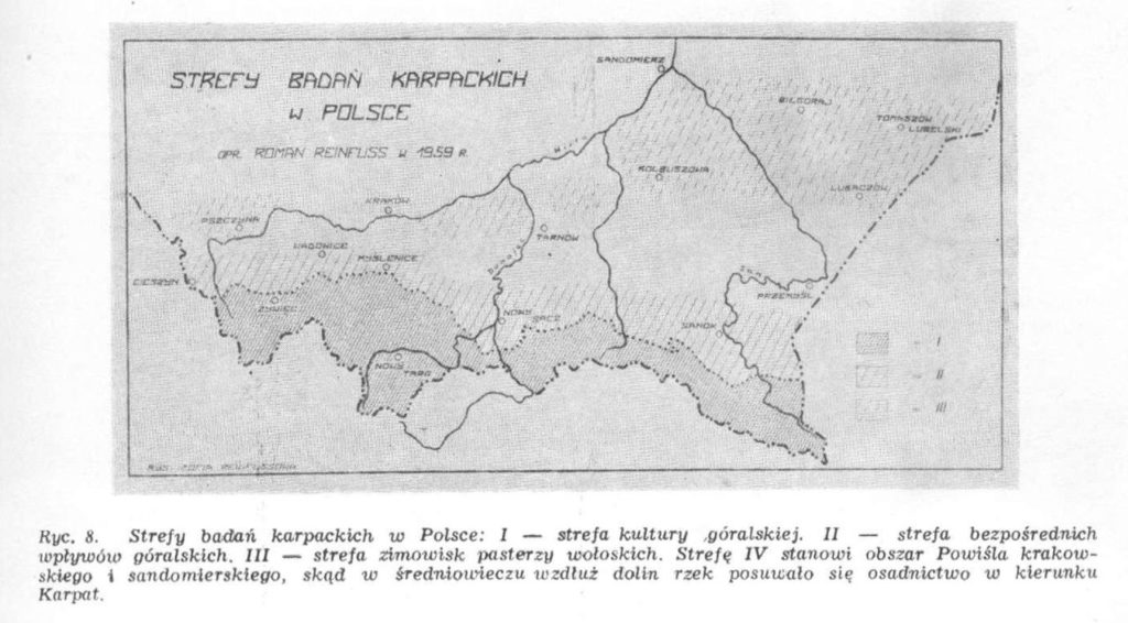 Найперше посмотрийме што подає Роман Райнфус, знаный пільскый етноґраф. За п. Райнфусом, властива лемківска культура – культуром гірском, а як видиме з мапы ниже, питома культура підсяніцкых сел, хоцка не є властивом гірском культуром, але є культуром о безпосереднїх гірскых вплывах (штрефованя №2):