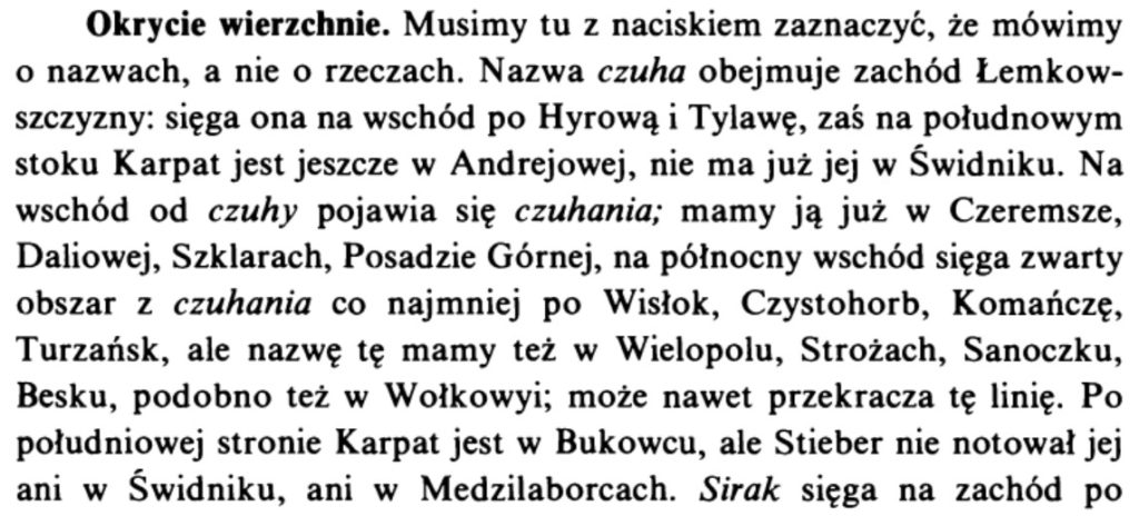 Підсумовуючы, приходиме до твердого виника, же чугы носили не лем на полудне Сяніччыны, але й ген коло самого Сянока, а навет выже! Єдно, што ся остало – то є хыба уточнити, ци люде з-під Сянока іх лем куповали од гірняків (як подає Р. Райнфус), а ци тїж знали робити в себе в селї на місци. Певен, тераз мы уж ся того на 100% не дізнаме, але частичнї на то можна буде одповісти, коли збадати, як далеко давнї заходила пастуша культура. Одсаль повім, же хоцкы Роман Райнфус остає найвеце авторитетным бадачом етноґрафіі лемків, але го працї прецїн вартат наново опрацёвати а кус дополнити (наприклад, на підставі того артикля, бодай мапку, де колиси фіксовала ся чуга). Етноґрафія, як і кажда наука, не має стояти на місци – тож бадайме! А вшыткым новым бадачом раю завсе глядати «своі нюансы» 😉