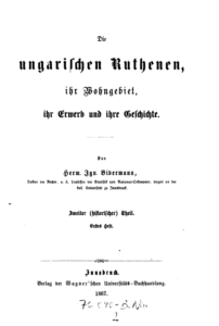 This is the second part of the two volume work Die ungarischen Ruthenen ihr Wohngebiet, written by Austrian statistician Hermann Ignaz Bidermann [1831-1892], which may be considered the first scientific ethnographic study of so-called “Hungarian Ruthenians” also known as Uhro-Rusyns, which was a historical term for the Carpatho-Rusyn people who came from the lands under the Hungarian crown.