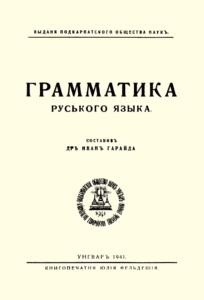 The Subcarpathian Scholarly Society’s first published work. The grammar was in wide use in Subcarpathian wartime publications. Although it did not represent a substantial shift in favor of vernacular Rusyn, it had a notable influence on the Rusyn movement due to its exclusivity — among other examples, it was proposed as a basis for the Rusyn literary language after 1989.