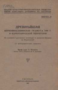This publication reproduces and analyzes one of the oldest surviving documents in the Rusyn language: a confirmation patent issued by the sons of voivode Balicza in 1404. The patent concerns the jurisdiction of the Hrušovo Monastery, and as such is important for early Rusyn ecclesiastical history. Other documents pertaining to the monastery are also reviewed.